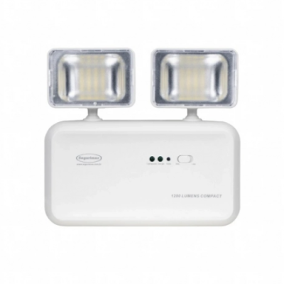 A Iluminação de Emergência LED Autônoma 1200 Lúmens 2 Faróis Compact da Segurimax foi fabricada para iluminar ambientes de até 250 m² em casos de emergência.