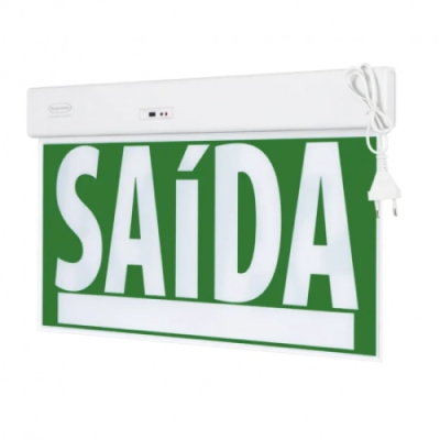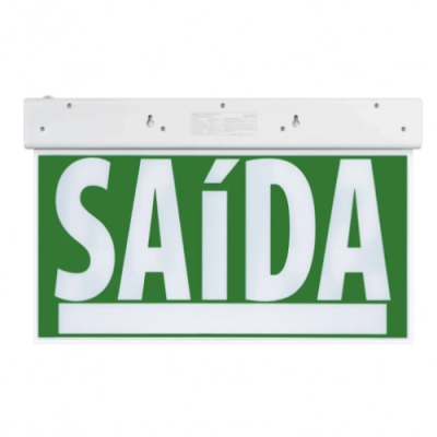 Acompanha adesivos com 8 opções (Saída, Saída de emergência, Exit, Escada, Indicação para baixo, Indicação para dois lados, Indicação para esquerda e Indicação para direita), para melhor ajuste no ambiente a ser instalada. Muito versátil, a placa de sinalização de saída pode ser instalada em várias posições, devido aos suportes que acompanham o produto (no teto, na parede ou suspenso). Fabricada em plástico ABS, é resistente a impactos, à tração e à abrasão. Possui alimentação bivolt automático 110V/220V (50 Hz/60 Hz), garantindo mais comodidade no ato de instalação. Por ser autônoma, não necessita estar conectada a um sistema de iluminação de emergência com baterias. Sua autonomia é de 1h30. Isto é, mesmo perante falta de energia elétrica, a placa de saída permanece acesa indicando as rotas de saída do ambiente.